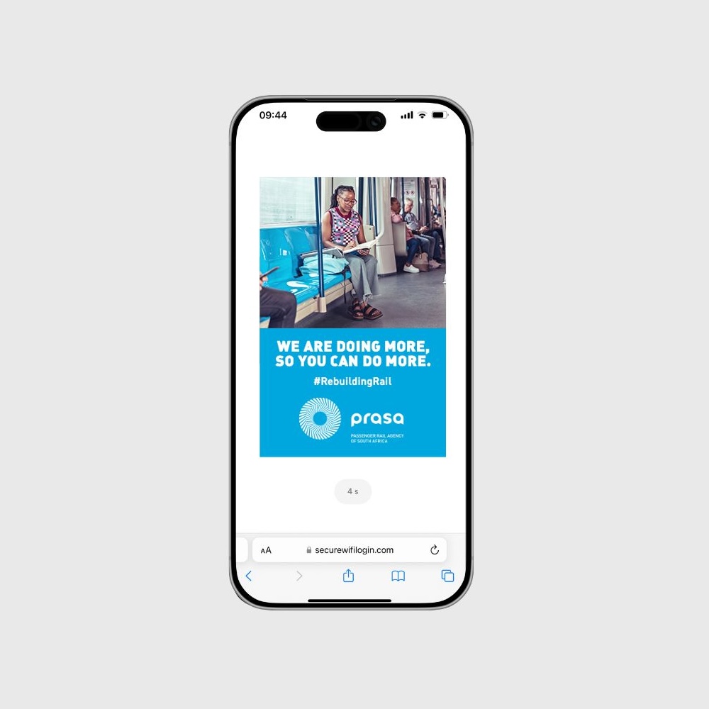 As part of PRASA’s brand relaunch, DigitalFWD activated its Public WiFi Advertising Network across taxi ranks, township malls, and key commuter hubs to restore confidence in passenger rail. The campaign highlighted PRASA’s modern trains, upgraded infrastructure, and affordable commuting—repositioning rail as a safe, reliable alternative to public transport and helping attract previous commuters back to train travel.