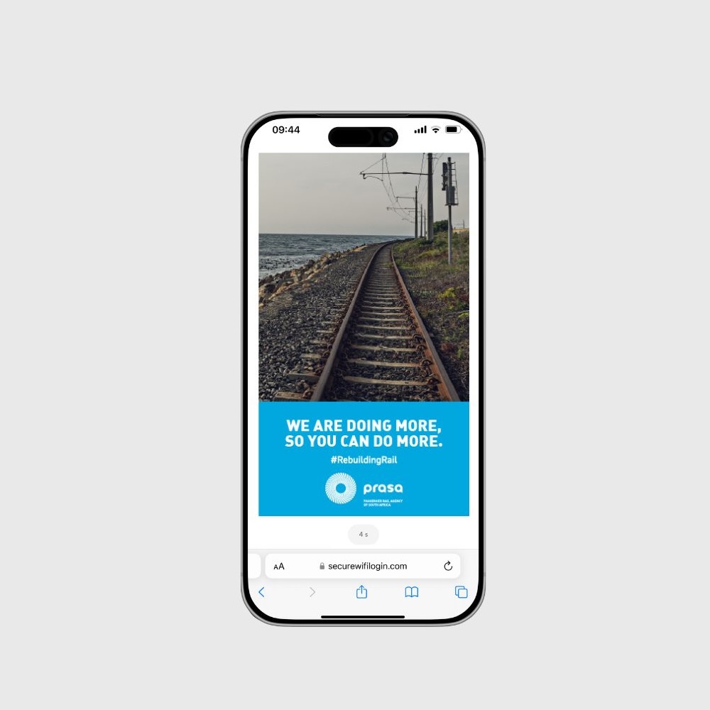 DigitalFWD leveraged its Public WiFi Advertising Network across high-footfall environments including taxi ranks, township malls, and other strategically targeted commuter locations. The campaign delivered contextual, location-based messaging that informed commuters about PRASA’s modern trains, improved infrastructure, and affordable commuting options—positioning rail as a credible, safer alternative to other public transport modes.